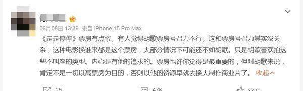 陆网驳斥胡歌有执着。尽管他献技的电影票房不如大预算高票房,然而坚执在中等预算资源下,寻找顺应我方的脚色。尽管电影票房不如预期,明星大叫力因此受到质疑,但同期有网友合计,胡歌内心有我方的追求,测度他接演电影,不所以高票房为操办。